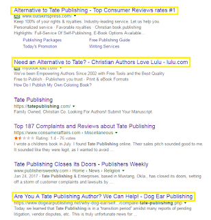 I'm sorry to hear that these scams still work. If they're getting money from authors, they don't need to get money from readers. I've never gone to a bookstore or a library seeking a title by Tate Publishing, but I'm confident I won't find any.