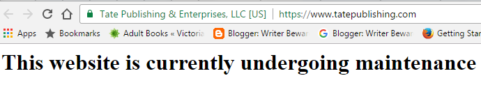 UPDATE 1/22/17: Quoth Richard Tate, according to this report from News Channel KFOR, “We love our authors. We are not going to abandon them.” He also claims that “while [Tate] represent around 39,000 authors, this closing mainly affects the few hundred that have books not yet published” (forgetting, apparently, about the many who do have books published and haven’t received royalties and/or book orders), and, in an apparent trip back in time to 2008, attributes the company’s closing to “the downturn in the economy”.