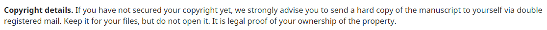 Perpetuation of a myth about copyright. This is what’s known as “poor man’s copyright”, and it’s bunk. Any genuine publishing professional should know better.