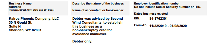 The bankruptcy filings also confirm what everybody already knew: Kairos Phoenix was Wid Bastian. The reason he set up this company probably won’t surprise you, either.