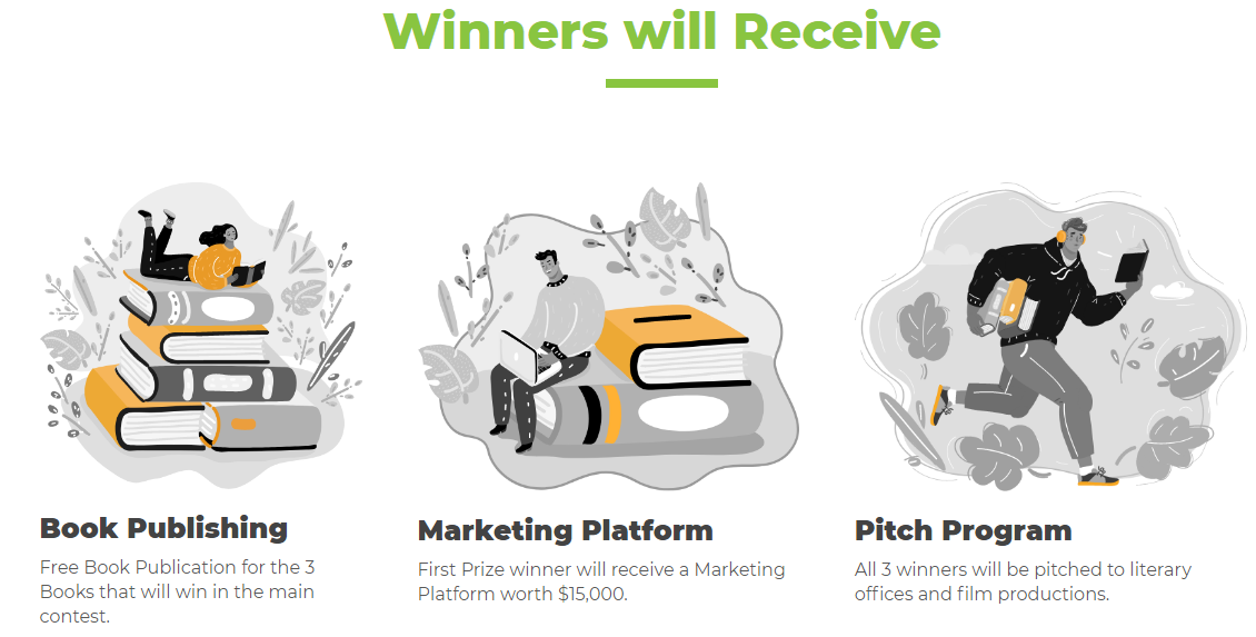 - Opportunities to spend more money. This is where entrants’ email addresses–which are required for entry–come in handy; non-winners will almost certainly be solicited to buy Legaia’s publishing packages and other services. (Contest guidelines also invite entrants without a book cover to “call us for a professional book cover.”)