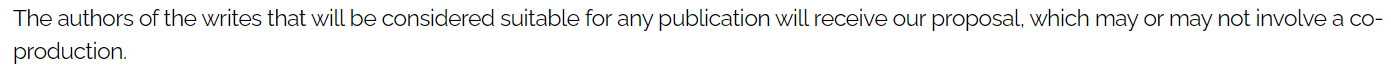 “Co-production” equals pay-to-play. “May or may not” usually equals pretty much always.