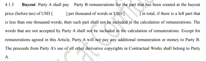 Although the contract is non-exclusive, it makes claim on a large array of subsidiary rights (Clause 2.2), including “movies, TV dramas, online drama series, animations, dramas,
