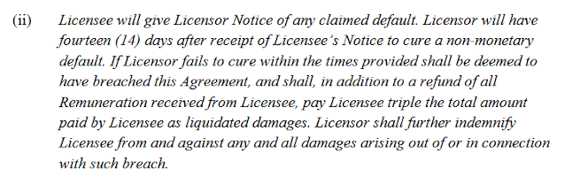 And here’s the sort of thing that GoodNovel might consider to be default (see the Licensor’s Representations and Warranties clause):